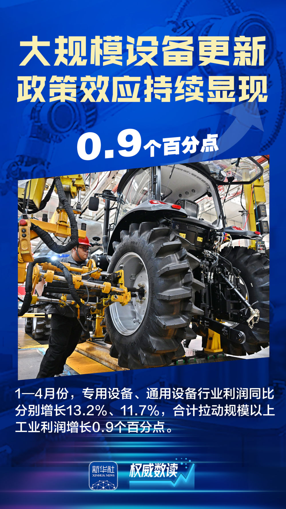 國家統(tǒng)計局、工信部等部門最新發(fā)布的數(shù)據(jù)顯示,今年前4個月,我國工業(yè)企業(yè)利潤增長加快、工業(yè)投資保持增長、裝備制造業(yè)引領作用突出、“兩新”政策效應持續(xù)顯現(xiàn)……一系列數(shù)據(jù),充分展現(xiàn)出我國工業(yè)經(jīng)濟的強大韌性和抗沖擊能力。