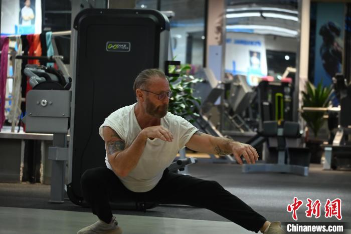 圖為斯蒂芬正在鍛煉。張旭 攝