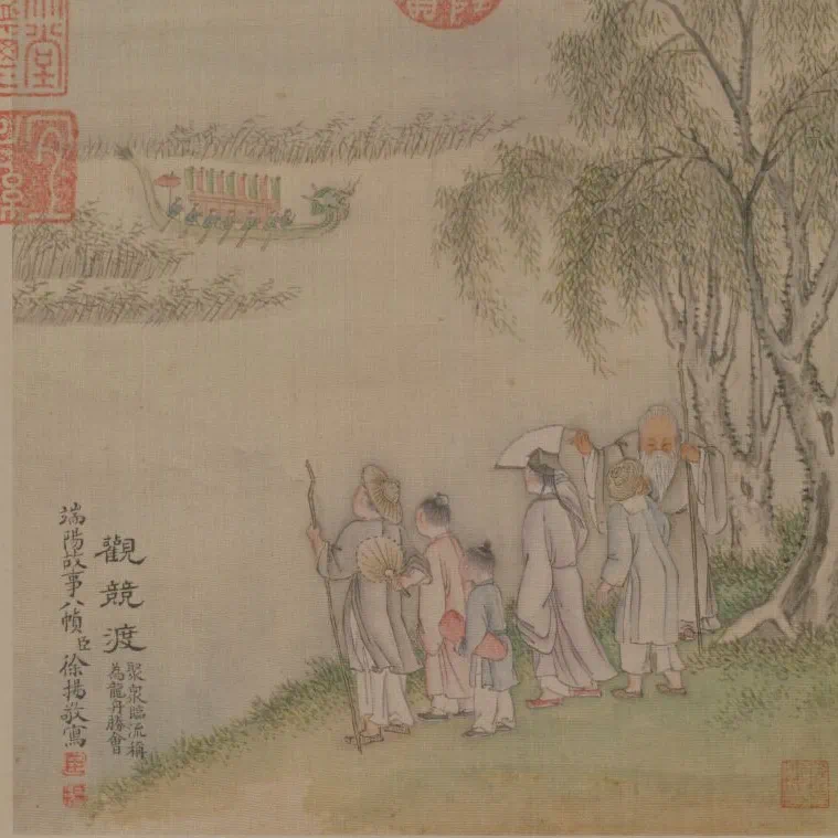 △《觀競渡》,題:“聚眾臨流稱為龍舟勝會?!?/p>