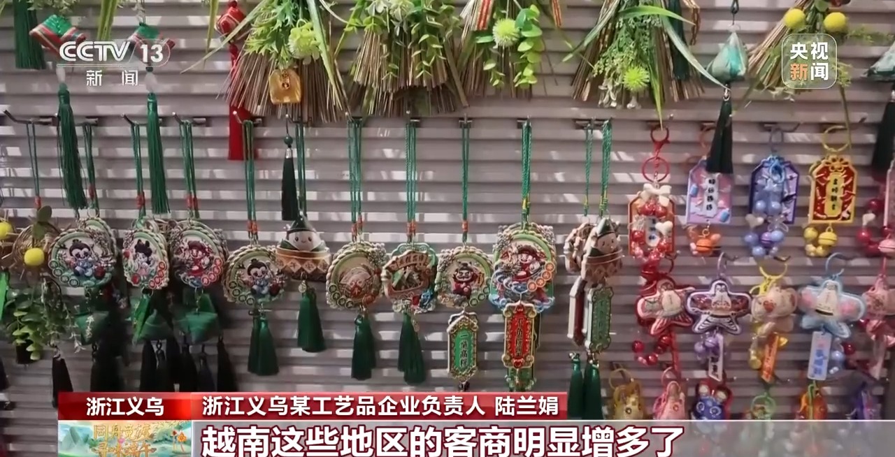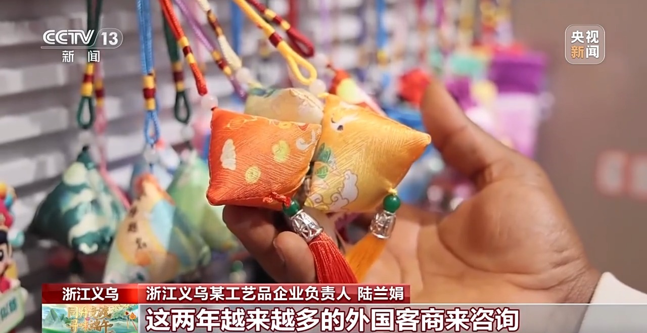 浙江義烏某工藝品企業(yè)負(fù)責(zé)人 陸蘭娟:以前香囊的消費群體以國內(nèi)為主,這兩年,越來越多的外國客商來咨詢。前年賣出了15萬個左右,去年訂單翻了一番,有30萬個。那今年的訂單也明顯超過了過去,尤其是新加坡、馬來西亞、越南這些地區(qū)的客商明顯增多。