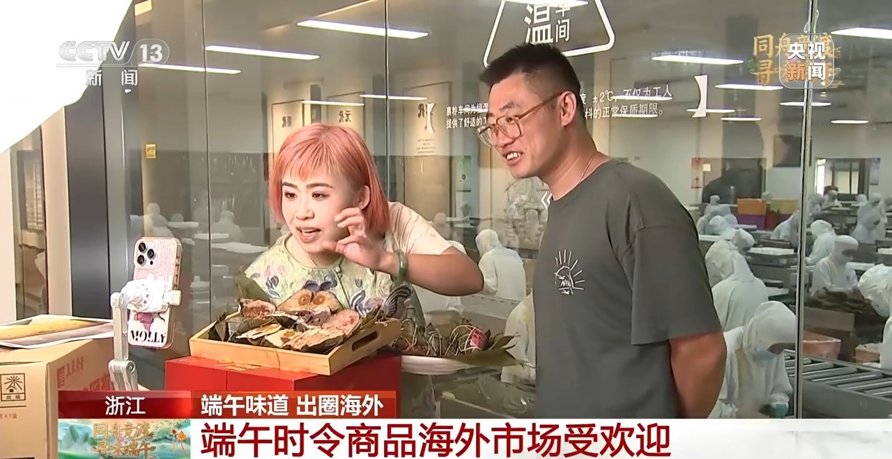 浙江嘉興某粽子生產(chǎn)企業(yè)國際業(yè)務(wù)中心經(jīng)理 沈騫:我們在直播中會展示粽子制作過程、食品溯源以及科普習(xí)俗,讓國外消費者了解粽子文化。我們還積極參加一些國內(nèi)外的展會,結(jié)合當(dāng)?shù)匚幕拖M習(xí)慣,對產(chǎn)品進(jìn)行本土化改進(jìn),促進(jìn)消費。今年,我們的粽子出口到了柬埔寨的商超和網(wǎng)購平臺,在韓國大棗粽和豆沙粽非常受歡迎。