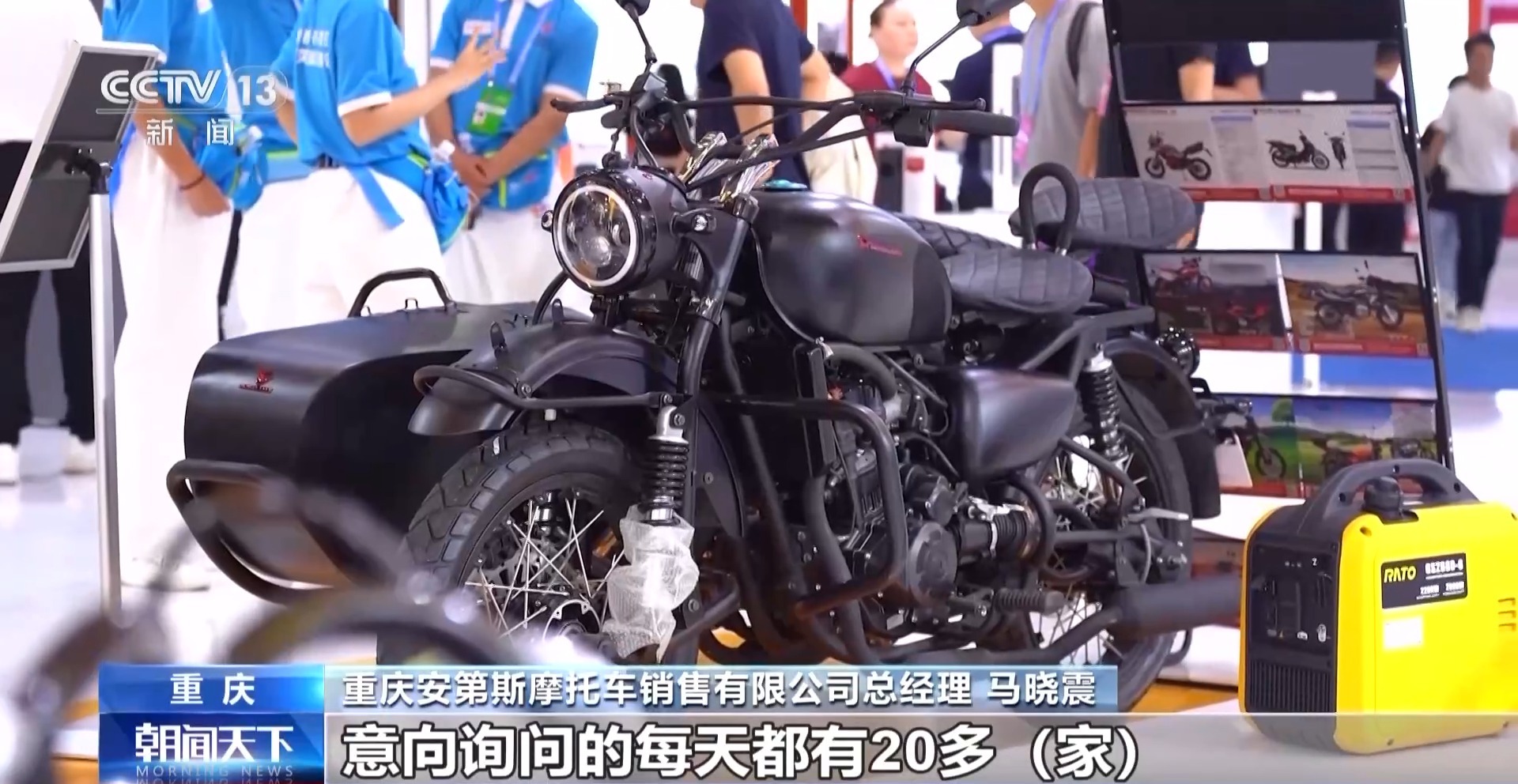 重慶安第斯摩托車銷售有限公司總經(jīng)理 馬曉震:嗓子都有些啞了,來意向詢問的每天都有20多家。用年輕的團隊,用更好的設(shè)計語言,去打造更符合國內(nèi)市場的產(chǎn)品。
