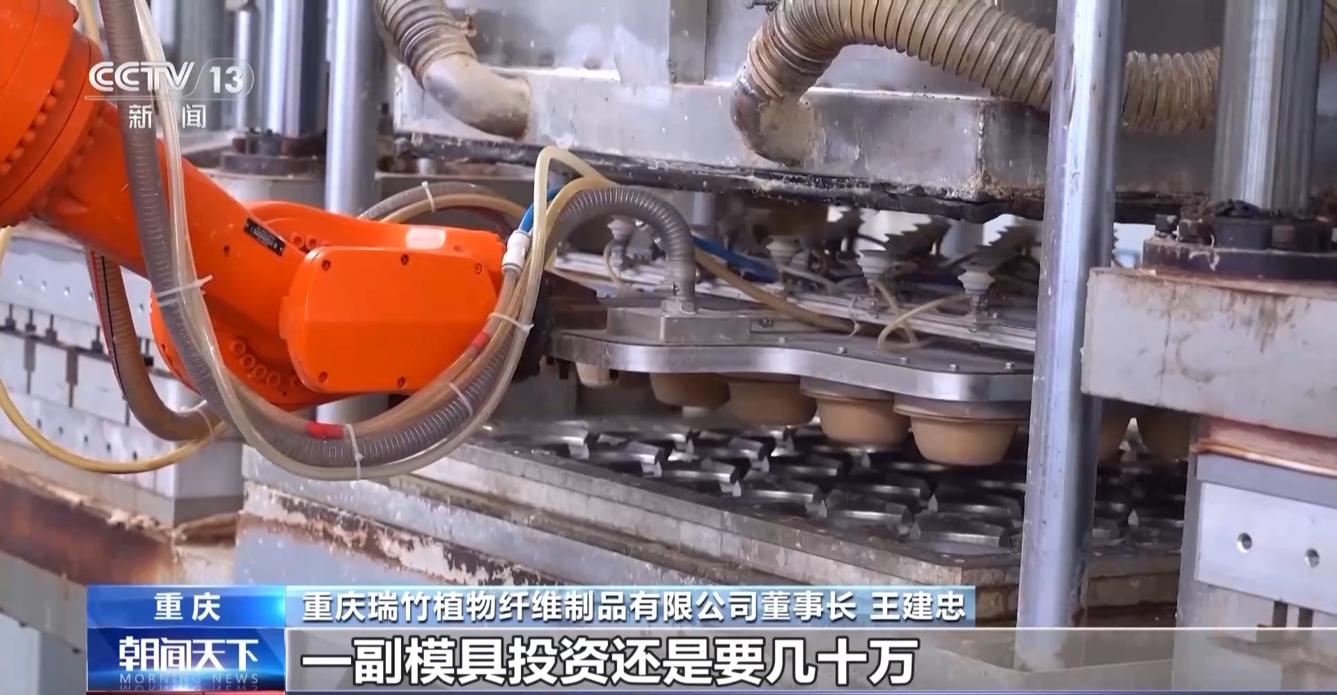 重慶瑞竹植物纖維制品有限公司董事長 王建忠:我們要根據(jù)市場的需求開發(fā)新的模具,一副模具投資要幾十萬,這種產(chǎn)業(yè)線我們已經(jīng)上了12條,馬上我們還準(zhǔn)備新建一個車間,再上16條生產(chǎn)線。