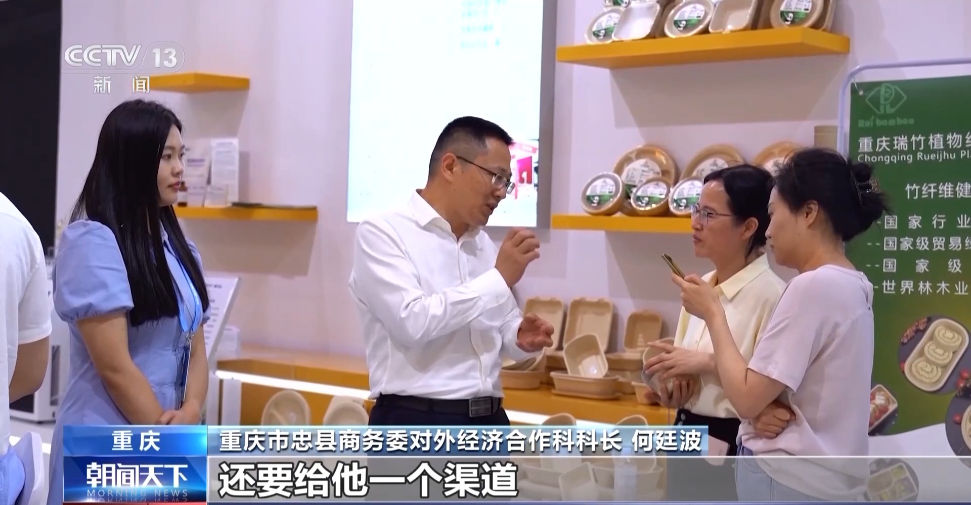 重慶市忠縣商務(wù)委對外經(jīng)濟合作科科長 何廷波:要給企業(yè)搭建平臺,也要給他渠道。一是幫助企業(yè)設(shè)計適合國內(nèi)市場銷售的一些產(chǎn)品,二是通過申請和打造屬于自己企業(yè)專屬的,走自己的品牌化路線。三是通過幫助企業(yè)爭取大型國際展會資格,讓我們的企業(yè)能夠獲取更多的銷售渠道。