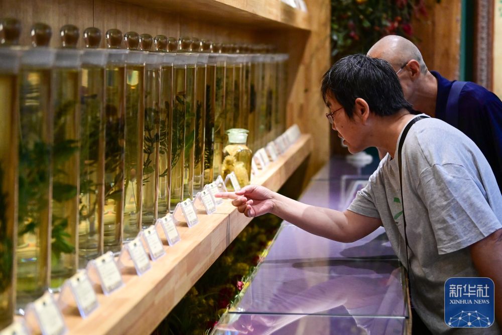 在新疆伊犁哈薩克自治州霍城縣解憂公主薰衣草園,游客在薰衣草博物館參觀(6月14日攝)。