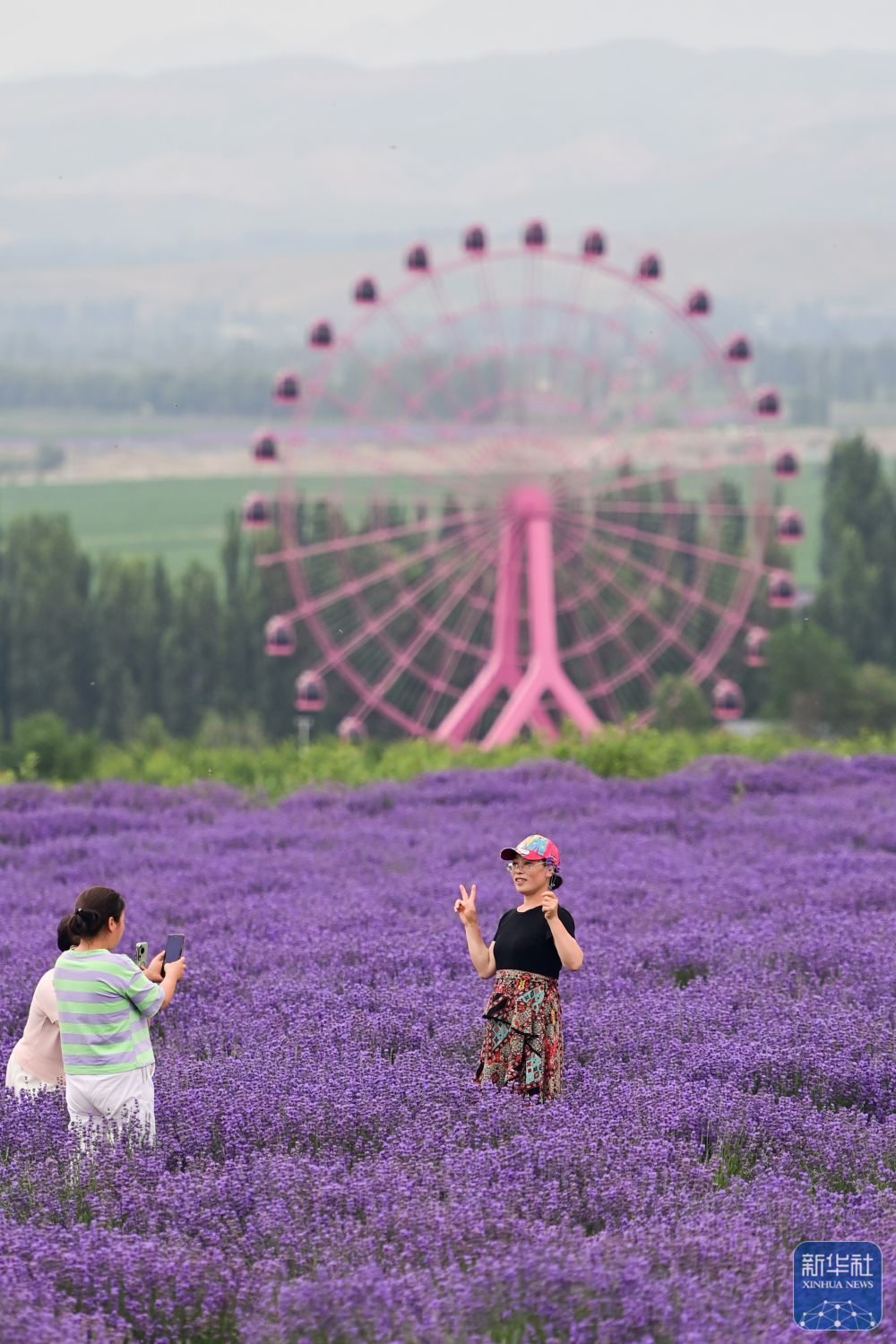 在新疆伊犁哈薩克自治州霍城縣漫心忘憂谷景區(qū),游客在打卡拍照(6月14日攝)。