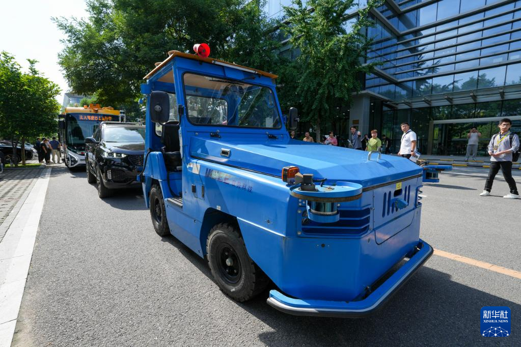 6月16日,在北京馭勢(shì)科技拍攝的一款用于機(jī)場(chǎng)物流作業(yè)的無人駕駛牽引車。新華社記者 鞠煥宗 攝