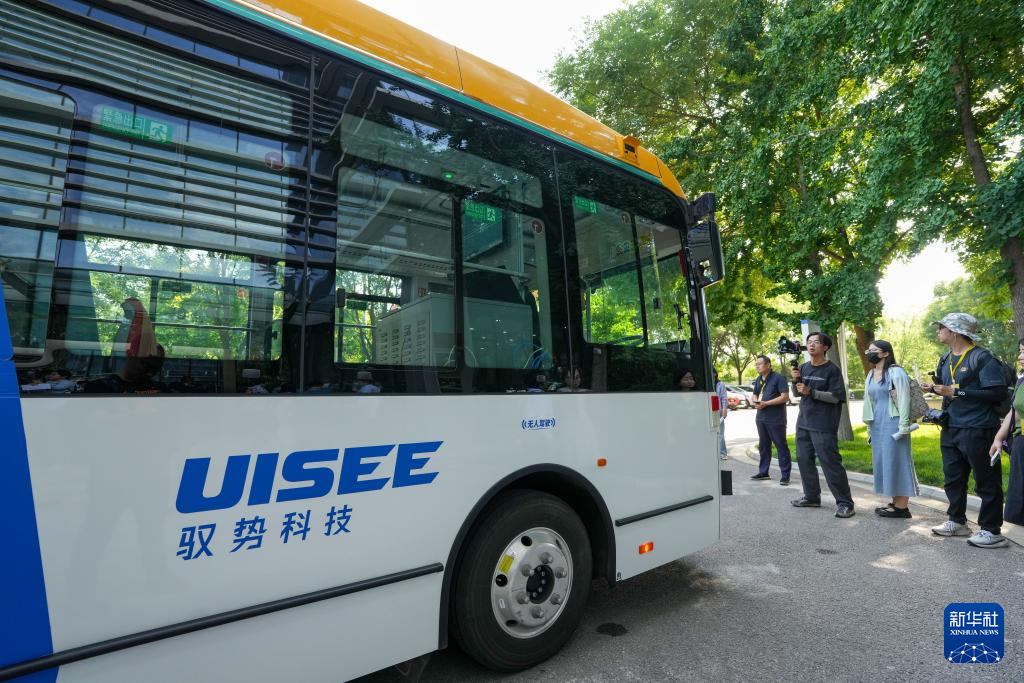 參觀者在體驗(yàn)北京馭勢(shì)科技的一款無人駕駛巴士(6月16日攝)。新華社記者 鞠煥宗 攝