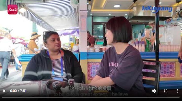 其間,斯里蘭卡《每日金融時(shí)報(bào)》副主編查魯米妮·德·席爾瓦和《InXinjiang》欄目記者一同開(kāi)啟了體驗(yàn)新疆文化的一天。查魯米妮·德·席爾瓦表示,新疆處處生機(jī)勃勃,充滿了文化氣息。在來(lái)新疆之前,她的同事告訴她“新疆很漂亮,你一定會(huì)愛(ài)上新疆”。來(lái)到新疆之后,查魯米妮·德·席爾瓦表示,新疆的確讓她大開(kāi)眼界,期待下次帶家人再來(lái)新疆。