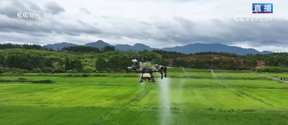 除了優(yōu)秀的品種,當(dāng)?shù)匾苍诔掷m(xù)推進(jìn)科技賦能田間管理。植保無(wú)人機(jī)在稻田上空進(jìn)行精準(zhǔn)飛防作業(yè),效率高、覆蓋勻、不傷苗都是它們的優(yōu)勢(shì)。而現(xiàn)在農(nóng)戶只需要通過手機(jī),就能預(yù)約“飛手”服務(wù),大大提高了效率。