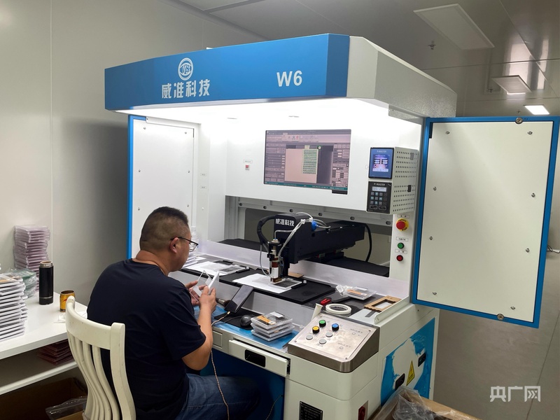 企業(yè)車間內的自動點膠機(央廣網(wǎng)記者 唐磊 攝)