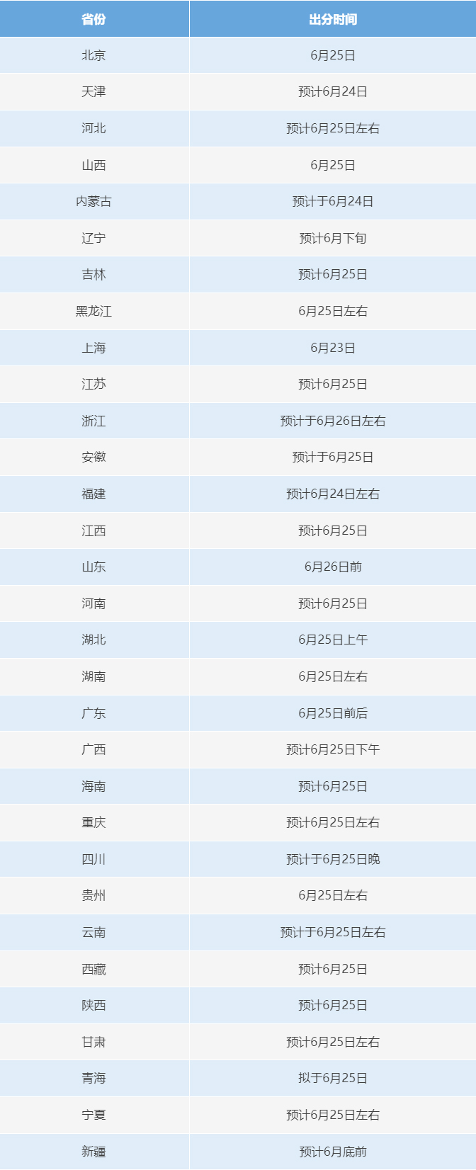 31個(gè)省份高考成績(jī)查詢時(shí)間