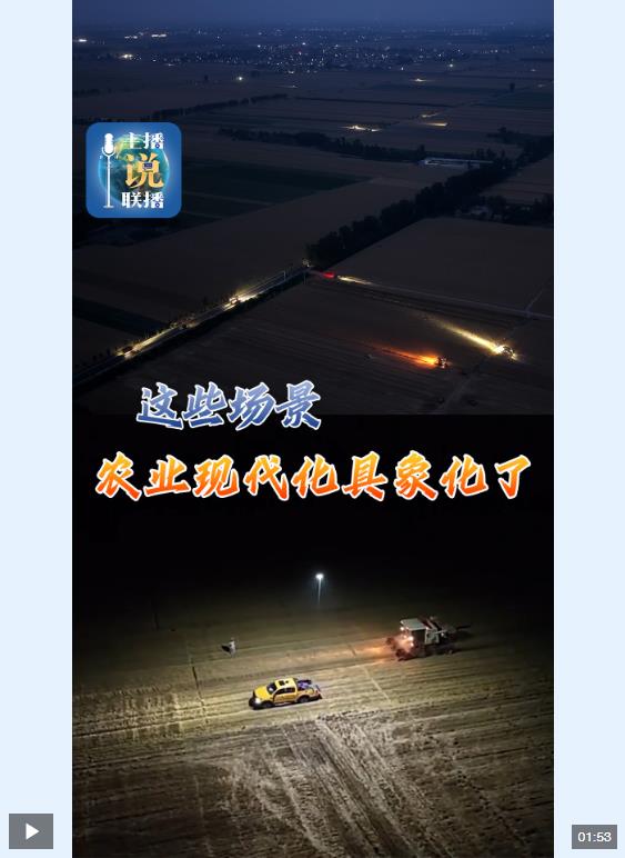 這些年的麥收,科技含量肉眼可見在不斷提升,今年亮點也不少。前些天有一條視頻在網(wǎng)上火了,河北一地迎來小麥集中收割期,而就在這個時候氣象部門發(fā)布了暴雨藍色預(yù)警。為了在下雨前將麥子搶收完,當?shù)剞r(nóng)業(yè)、氣象、電力等部門啟動應(yīng)急預(yù)案,緊急調(diào)集車載移動式應(yīng)急照明燈、大功率照明無人機等裝備,組織連夜搶收。夜幕下,無人機點亮夜空,收割機來回移動,光束交錯科技感十足。“麥”向豐收,亮了。