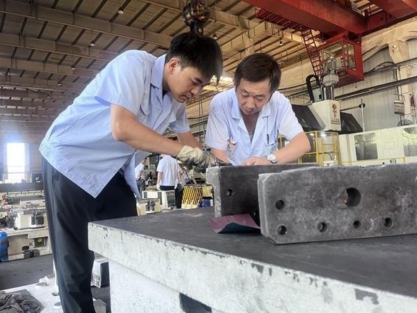 為追趕進(jìn)度,他主動(dòng)加碼訓(xùn)練:夏天的車(chē)間猶如“蒸籠”,高強(qiáng)度訓(xùn)練下,他的衣衫反復(fù)被汗水浸透,干后結(jié)出層層鹽花。他每天從清晨6點(diǎn)訓(xùn)練到晚上9點(diǎn),午間匆匆吃口飯便立刻返回實(shí)訓(xùn)場(chǎng);深夜,他仍手捧理論書(shū)籍逐字鉆研,直到雙眼難睜才休息。在圖紙繪制上,別人畫(huà)一遍的圖紙,他至少畫(huà)3遍?!跋葢{記憶臨摹,再照著實(shí)物校準(zhǔn),用尺子反復(fù)丈量線條誤差,必須通過(guò)多次練習(xí),形成精準(zhǔn)記憶?!秉h金鑫說(shuō)。