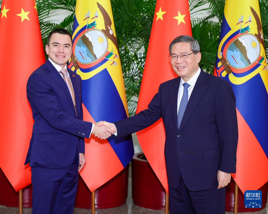 李強(qiáng)指出,中厄同為發(fā)展中國(guó)家,都把發(fā)展經(jīng)濟(jì)、改善民生作為重要任務(wù)。中方愿同厄方加強(qiáng)發(fā)展戰(zhàn)略對(duì)接,密切“一帶一路”合作,擴(kuò)大雙邊貿(mào)易規(guī)模,深化在清潔能源、基礎(chǔ)設(shè)施、金融等領(lǐng)域合作。中方樂(lè)見更多厄方優(yōu)質(zhì)產(chǎn)品輸華,歡迎厄方用好進(jìn)博會(huì)等推介平臺(tái)。雙方要繼續(xù)加強(qiáng)教育、文化、青年等領(lǐng)域交流合作,便利人員往來(lái),夯實(shí)兩國(guó)關(guān)系的民意基礎(chǔ)。中方愿同厄瓜多爾等拉美和加勒比國(guó)家一道,以共建中拉命運(yùn)共同體“五大工程”為契機(jī),在實(shí)現(xiàn)現(xiàn)代化的道路上攜手前行。中方也愿同厄方加強(qiáng)在聯(lián)合國(guó)等多邊機(jī)制的溝通協(xié)調(diào),踐行真正的多邊主義,為維護(hù)世界和平和發(fā)展、推動(dòng)構(gòu)建人類命運(yùn)共同體作出積極貢獻(xiàn)。