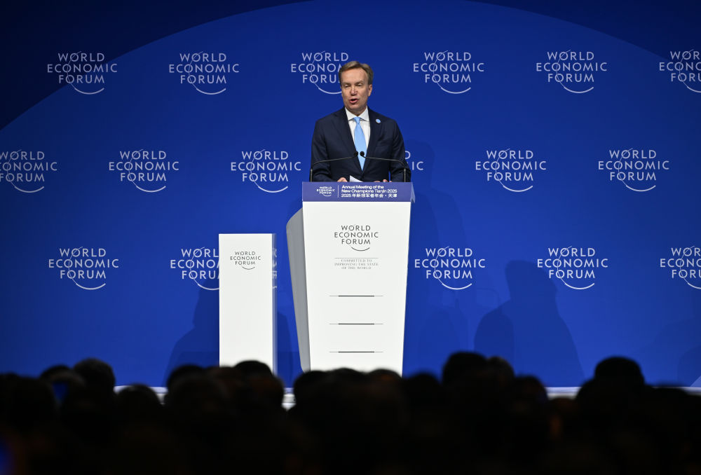 6月25日,在國家會展中心(天津),世界經(jīng)濟論壇總裁博爾格·布倫德在開幕式上發(fā)言。新華社記者 孫凡越 攝