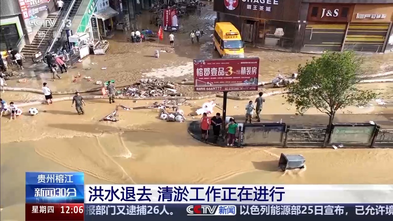 最近,貴州黔東南州遭遇持續(xù)強(qiáng)降雨,其中,榕江、從江兩縣24日先后經(jīng)歷洪峰過(guò)境,縣城多地被淹,受災(zāi)嚴(yán)重。隨著降雨暫停,洪水水位明顯下降,清淤工作正在進(jìn)行。