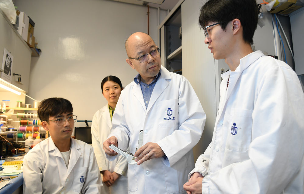 6月19日,香港太空機(jī)械人與能源中心聯(lián)合主任于宏宇教授(右二)在實(shí)驗(yàn)室與團(tuán)隊(duì)成員交流。新華社記者 陳鐸 攝