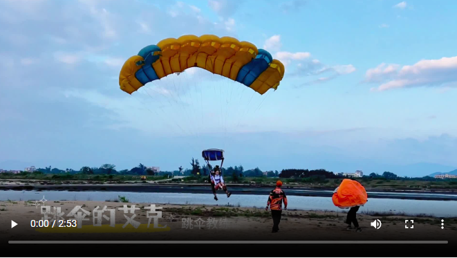 艾克萊姆出生在大美新疆博樂市,是一名職業(yè)跳傘員,也是海南鶯歌海跳傘基地的一名跳傘教練。艾克萊姆喜歡在藍天白云間自由穿梭的感覺,三年間累計完成了1000多次的跳傘。艾克萊姆說:“跳傘是一種與天空對話的方式,是人類對自由勇敢的追求。在高空中,風在耳邊呼嘯,那種感覺無法用言語來形容。”