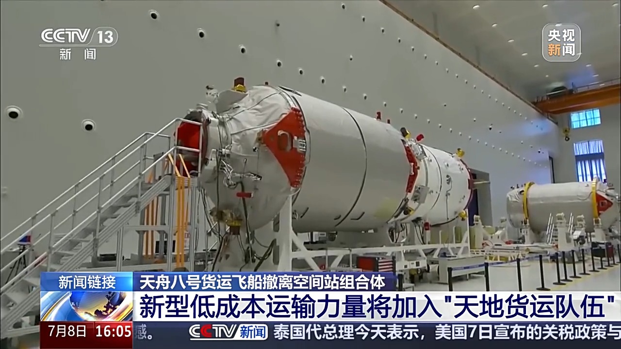 北京時(shí)間2025年7月8日15時(shí)9分,天舟八號(hào)貨運(yùn)飛船順利撤離空間站組合體,轉(zhuǎn)入獨(dú)立飛行階段,將于近期擇機(jī)受控再入大氣層。天舟八號(hào)貨運(yùn)飛船于2024年11月15日在文昌航天發(fā)射場(chǎng)發(fā)射入軌,共計(jì)在軌運(yùn)行近八個(gè)月,為神舟十九號(hào)、二十號(hào)乘組提供了物資保障。通過(guò)短片,一起回顧天舟八號(hào)的任務(wù)過(guò)程。