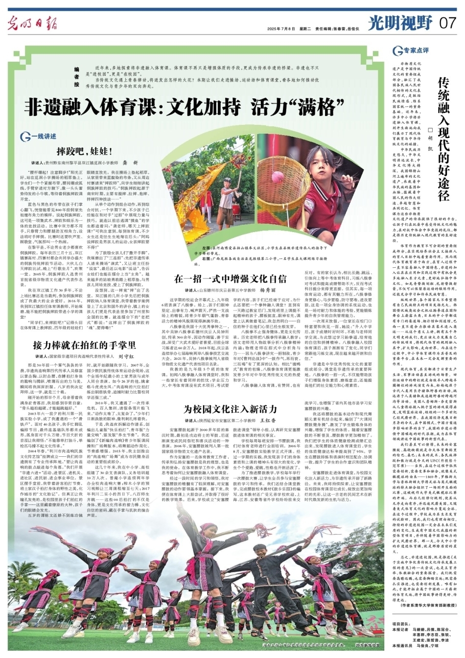 近年來(lái),多地探索將非遺融入體育課。體育課不再只是增強(qiáng)體質(zhì)的手段,更成為傳承非遺的橋梁。非遺也不只是“進(jìn)校園”,更是“在校園”。