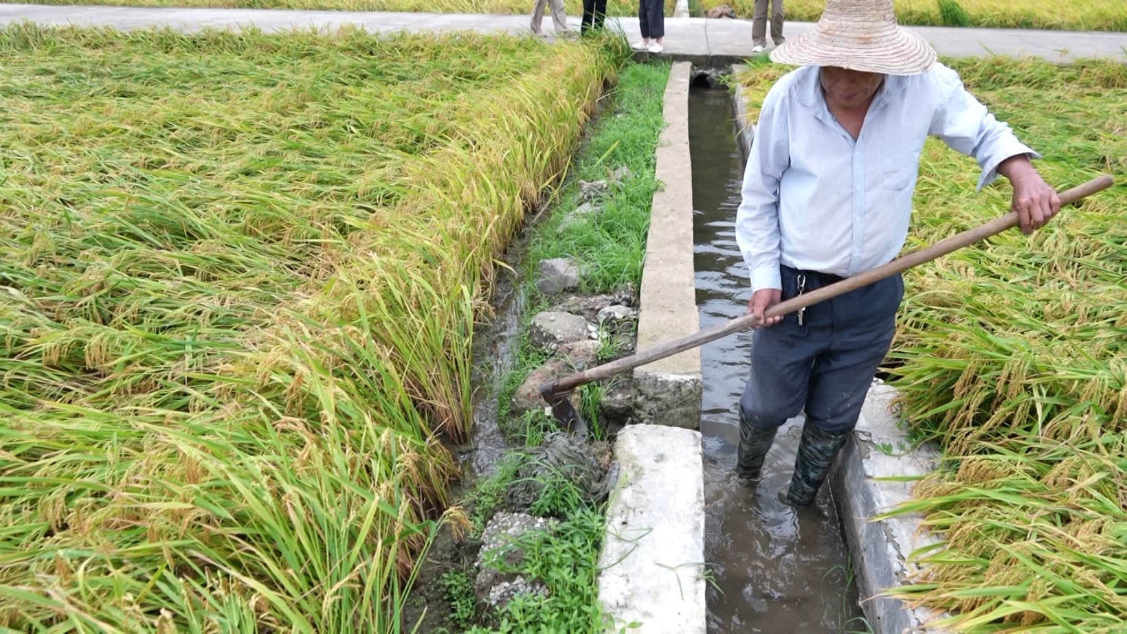 農(nóng)技專家楊煥清來到現(xiàn)場指導(dǎo)農(nóng)戶搶收,“它倒平后很容易會發(fā)芽,稻谷發(fā)芽以后就沒有價值了?,F(xiàn)在主要就是開溝排水,一有晴天馬上搶收。”