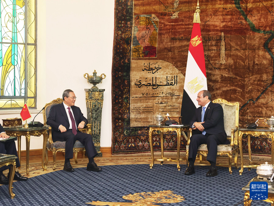 李強(qiáng)首先轉(zhuǎn)達(dá)習(xí)近平主席對(duì)塞西總統(tǒng)的親切問候。李強(qiáng)表示,近年來,在兩國(guó)元首戰(zhàn)略引領(lǐng)下,中埃關(guān)系蓬勃發(fā)展。中方愿同埃方一道,以明年中埃建交70周年為契機(jī),賡續(xù)傳統(tǒng)友誼,鞏固政治互信,在涉及彼此核心利益問題上繼續(xù)堅(jiān)定相互支持,不斷豐富中埃全面戰(zhàn)略伙伴關(guān)系內(nèi)涵,推動(dòng)兩國(guó)各領(lǐng)域合作取得更多成果,朝著構(gòu)建面向新時(shí)代的中埃命運(yùn)共同體的目標(biāo)持續(xù)邁進(jìn)。