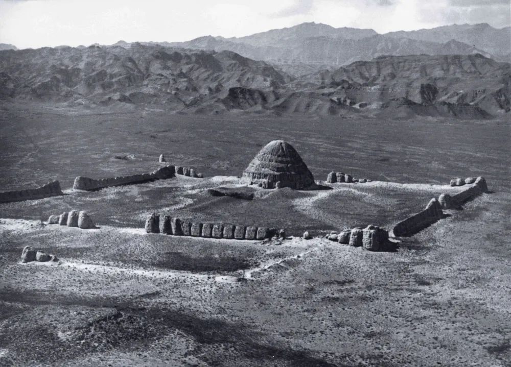 這是20世紀(jì)30年代,德國飛行員卡斯特飛越寧夏賀蘭山時(shí)拍攝的西夏陵3號陵(資料照片)。新華社發(fā)