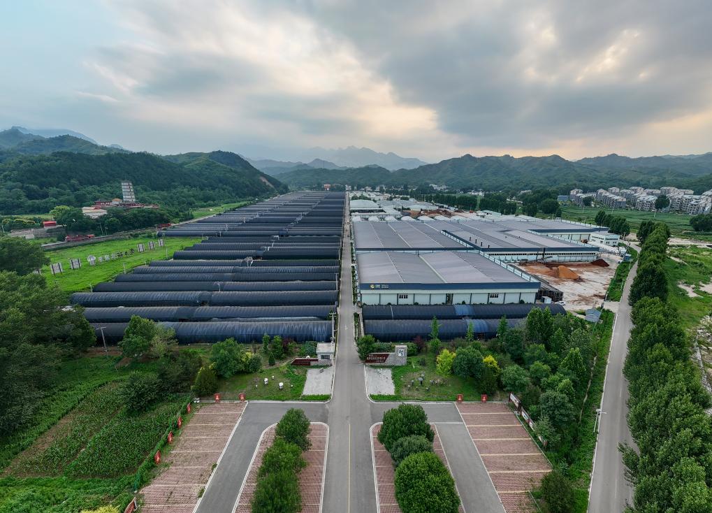 這是7月4日拍攝的阜平縣天生橋鎮(zhèn)食用菌產業(yè)核心園區(qū)(無人機照片)。新華社記者 李鑫 攝
