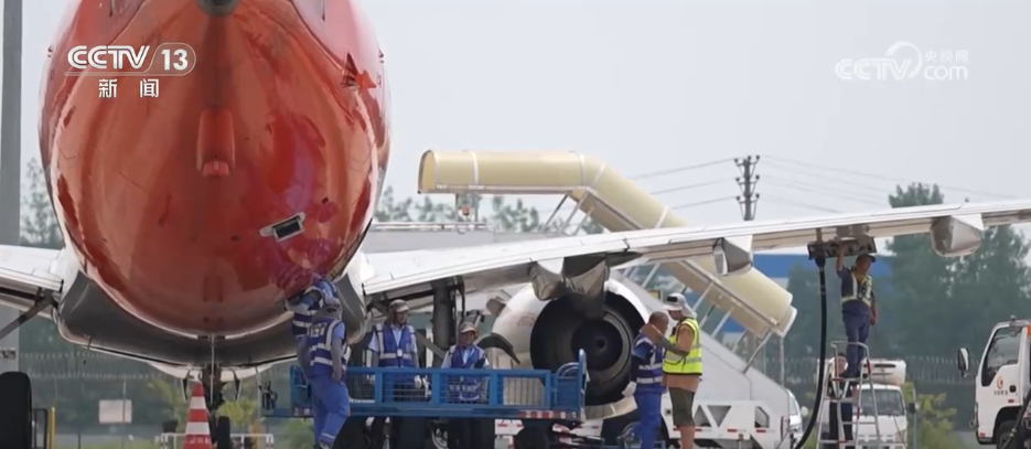 7月16日上午,成都市氣象臺發(fā)布了高溫紅色預警信號,多地最高氣溫超過40℃。在成都雙流國際機場的停機坪,地表溫度甚至逼近50℃。在這樣的酷熱中,為保障暑期客貨運航班運輸安全有序,機場一線的地勤人員頂著高溫堅守崗位,通過倒班協(xié)作,保障暑期運輸。