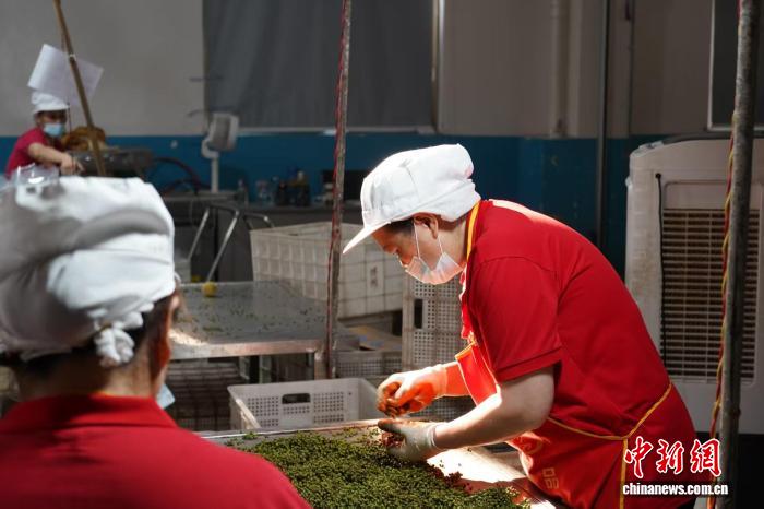 近日,工作人員在重慶江津的一處車間內(nèi)分揀花椒。楊思琦 攝