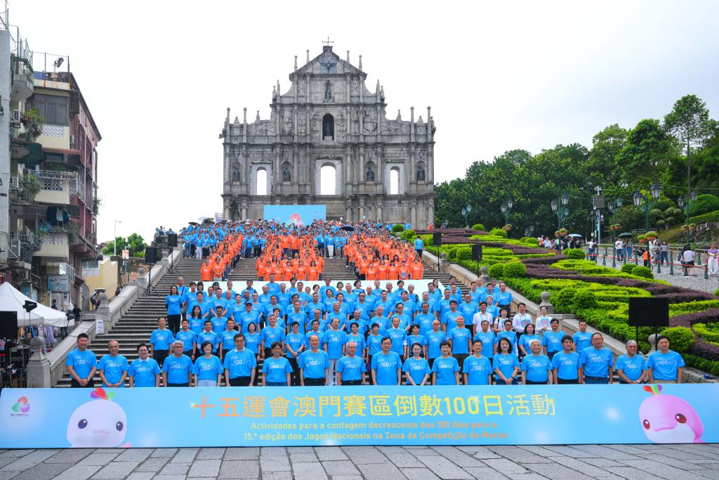 這是8月1日在澳門拍攝的第十五屆全國運(yùn)動會倒計(jì)時100天慶?;顒蝇F(xiàn)場。新華社發(fā)(張金加攝)