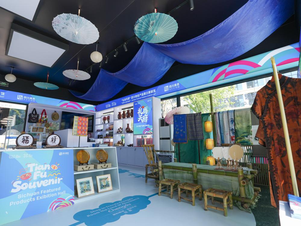 8月3日,在成都世運(yùn)會(huì)運(yùn)動(dòng)員村A區(qū)拍攝的四川特色產(chǎn)品展示展銷館。新華社記者 王曦 攝