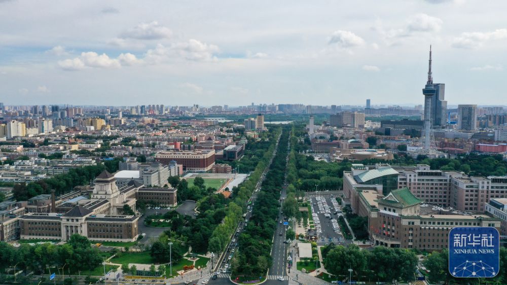 7月28日拍攝的長(zhǎng)春新民大街(無(wú)人機(jī)全景拼接照片)。
