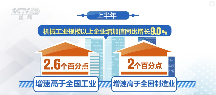 此外,上半年,機(jī)械工業(yè)規(guī)模以上企業(yè)增加值同比增長9.0%,增速高于全國工業(yè)和制造業(yè)2.6和2個(gè)百分點(diǎn),為穩(wěn)定經(jīng)濟(jì)大盤、提振工業(yè)經(jīng)濟(jì)發(fā)揮積極作用。
