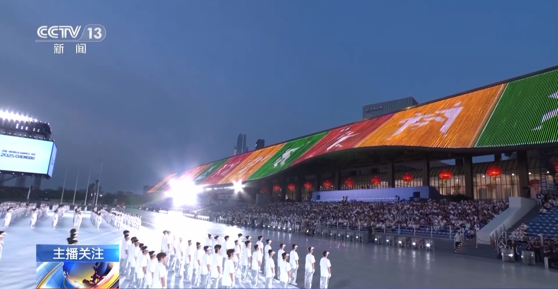 成都世運(yùn)會(huì)開閉幕式總制作人 王銳祥:等于那個(gè)舞臺(tái)是180度。以往在一個(gè)體育場(chǎng)館里面的舞臺(tái)有聚焦點(diǎn),但在戶外,基本上人所看到的舞臺(tái)層面,都要表達(dá),所以這個(gè)是考驗(yàn)我們導(dǎo)演、舞美、燈光師在聚焦點(diǎn),怎么把我們的觀眾拉回這個(gè)舞臺(tái)上。如果沒有一個(gè)很強(qiáng)烈的細(xì)節(jié)感受,沒有辦法把觀眾的細(xì)節(jié)拉回中心舞臺(tái)。