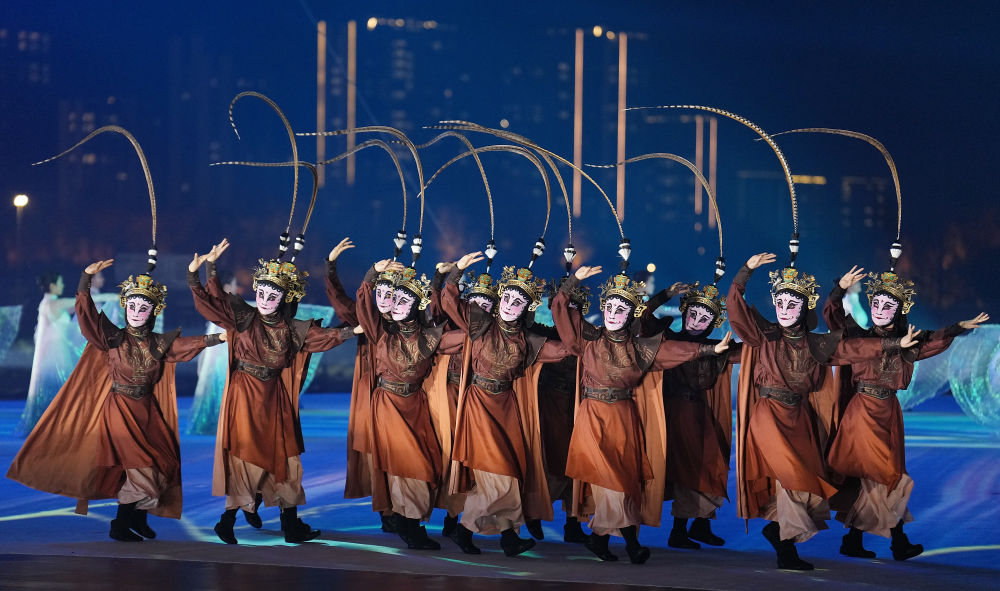 8月7日,演員在開幕式現(xiàn)場表演。新華社記者 陳益宸 攝