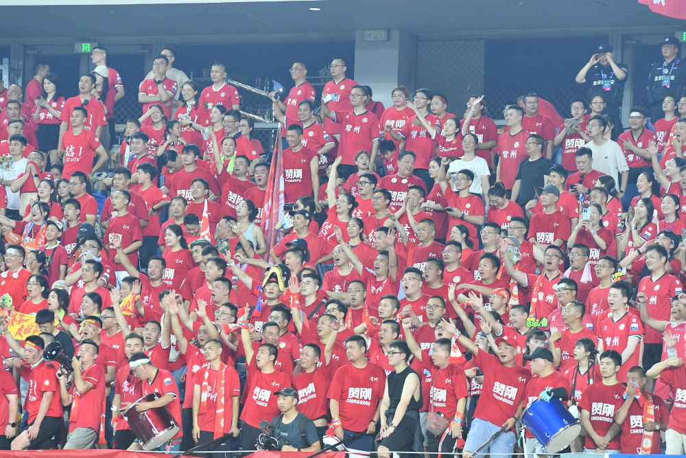 2025江蘇省城市足球聯(lián)賽第六輪比賽,常州隊球迷為球隊加油助威。新華社發(fā)(劉臻睿攝)