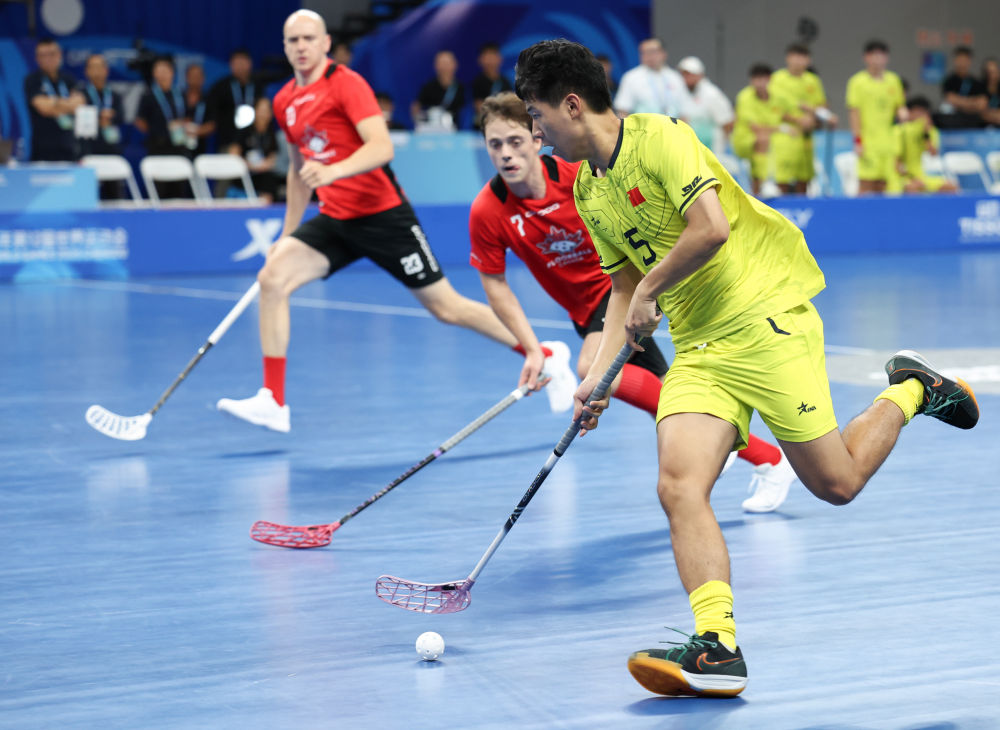 8月10日,中國隊(duì)球員張志恒(前)在比賽中帶球進(jìn)攻。當(dāng)日,在2025年成都世運(yùn)會(huì)軟式曲棍球男子B組預(yù)賽中,中國隊(duì)不敵加拿大隊(duì)。新華社記者 梁旭 攝