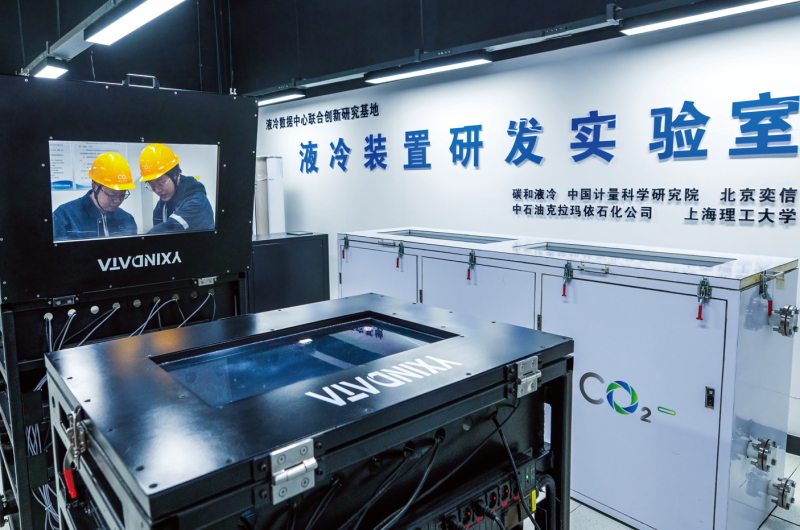 克拉瑪依云計(jì)算產(chǎn)業(yè)園克拉瑪依市碳和液冷數(shù)據(jù)中心,工程師正在進(jìn)行工程試驗(yàn)。閔勇 攝