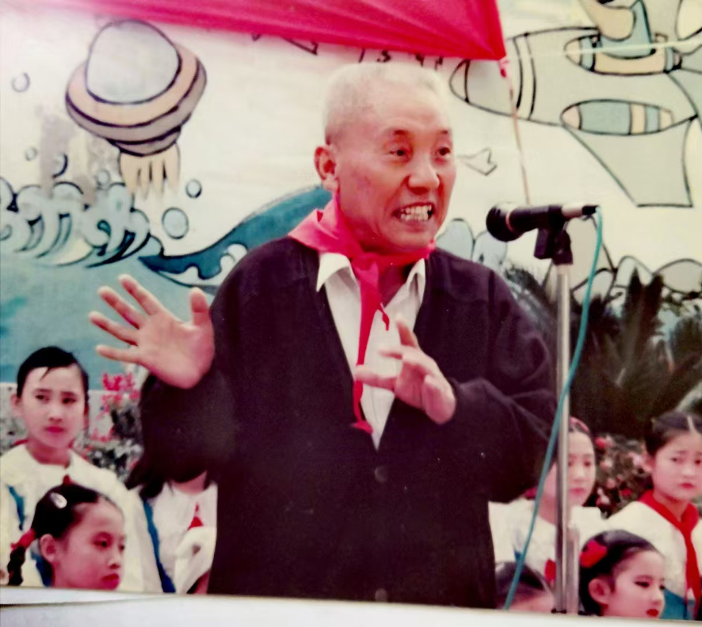 ↑李德富為漢口鄱陽街小學(xué)師生進行愛國主義教育演講
