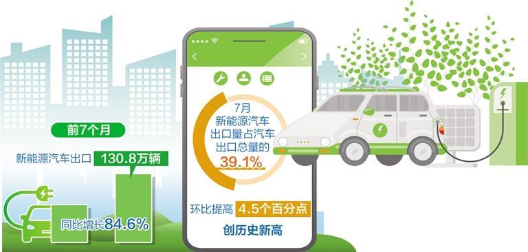 值得一提的是,新能源汽車出口數(shù)量增長明顯。前7個(gè)月,新能源汽車出口130.8萬輛,同比增長84.6%,成為外貿(mào)增長的亮點(diǎn)。
