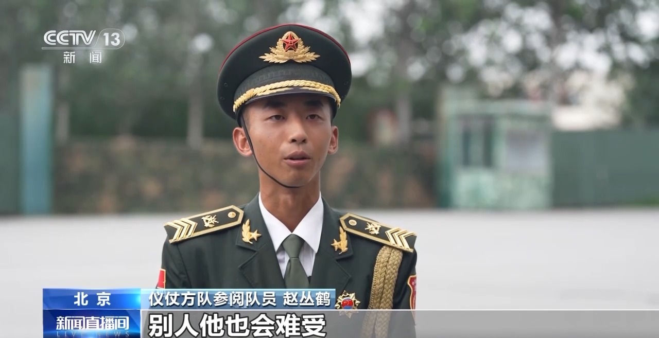 儀仗方隊(duì)受閱隊(duì)員 趙叢鶴:其實(shí)當(dāng)你難受的時(shí)候,別人他也會(huì)難受,像這個(gè)時(shí)候我們比拼的就不是身體素質(zhì)了,我們比拼的是意志力。