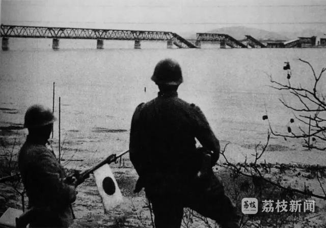 錢塘江大橋炸毀后,日軍在江邊觀望