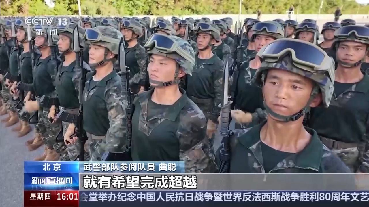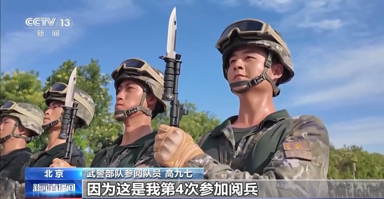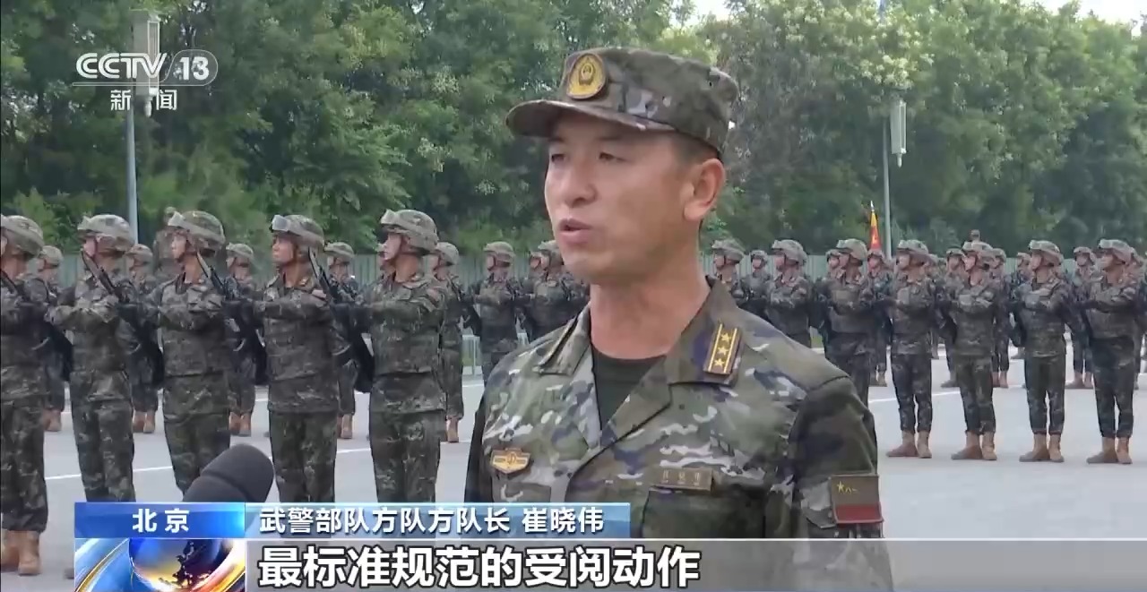 武警部隊方隊方隊長 崔曉偉:目前我們已經(jīng)進(jìn)入最后的沖刺階段,在紀(jì)念抗戰(zhàn)勝利80周年紀(jì)念日當(dāng)天,以最昂揚(yáng)的精神狀態(tài)、最標(biāo)準(zhǔn)規(guī)范的受閱動作,光榮地接受黨和人民檢閱,接受習(xí)主席檢閱。