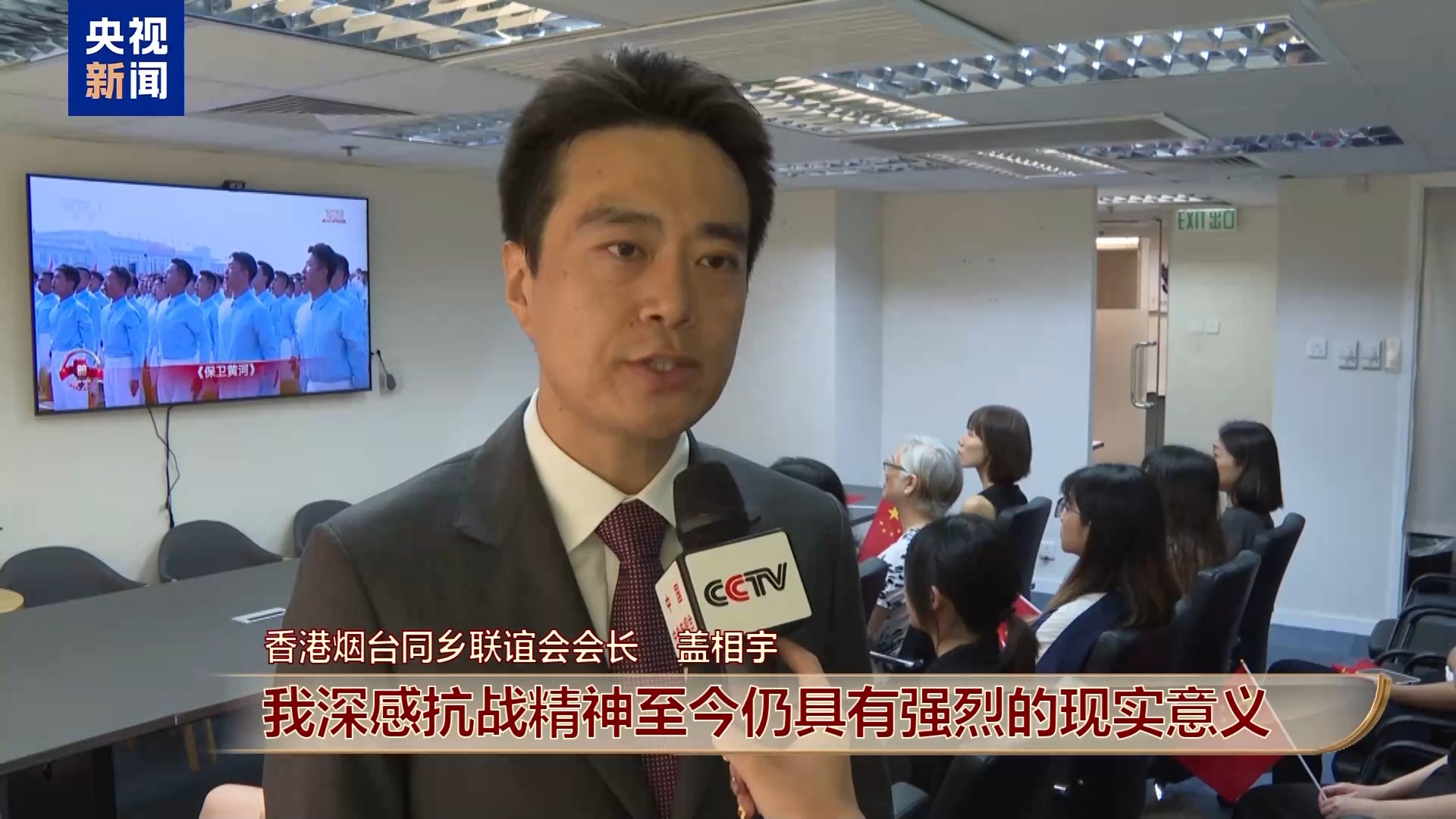 香港煙臺同鄉(xiāng)聯(lián)誼會會長 蓋相宇:作為香港人,我深感抗戰(zhàn)精神至今仍具有強烈的現(xiàn)實意義,激勵我們砥礪前行。從偉大勝利走向偉大復興,英雄的中國人民必將在偉大的斗爭中書寫新的英雄史詩。