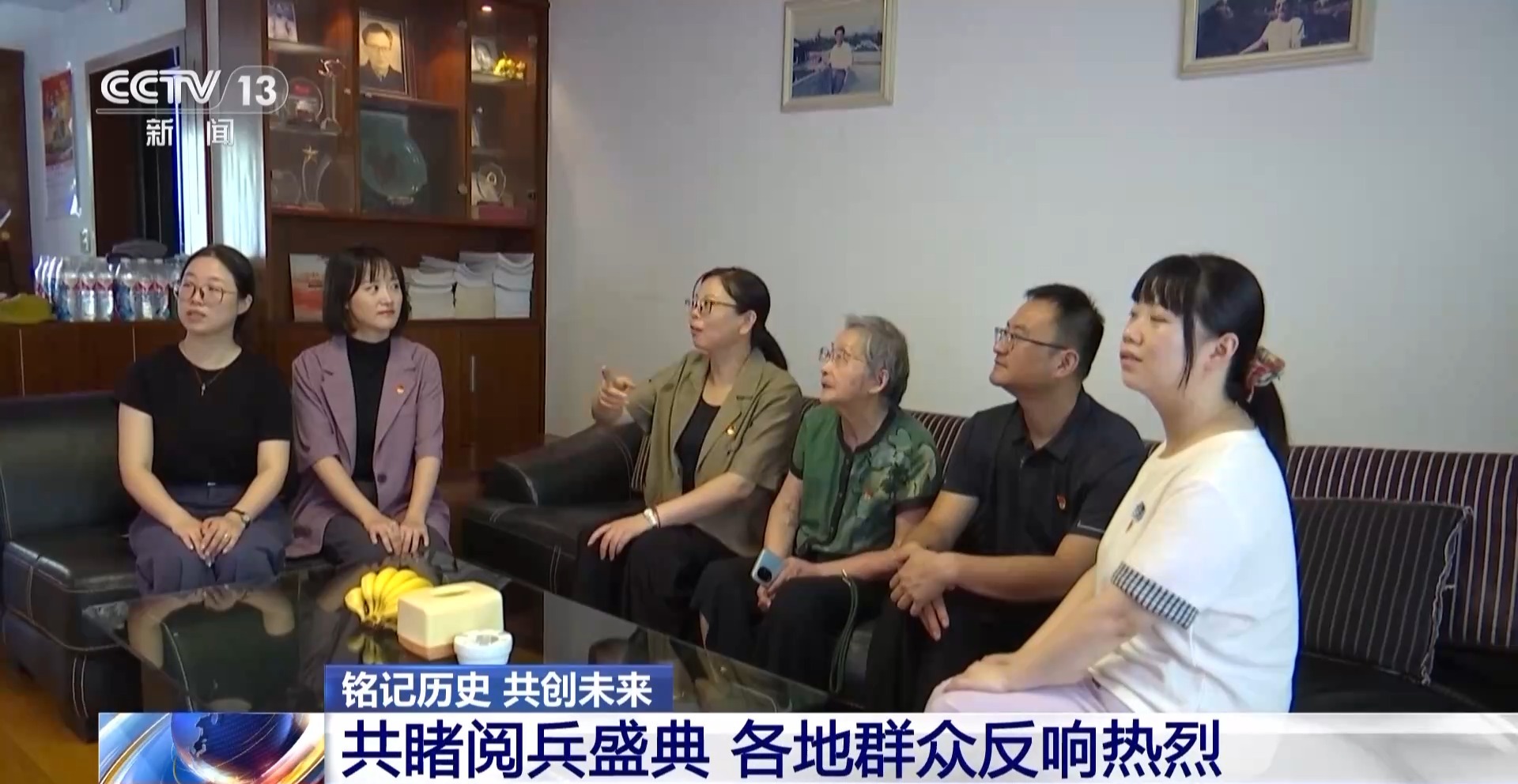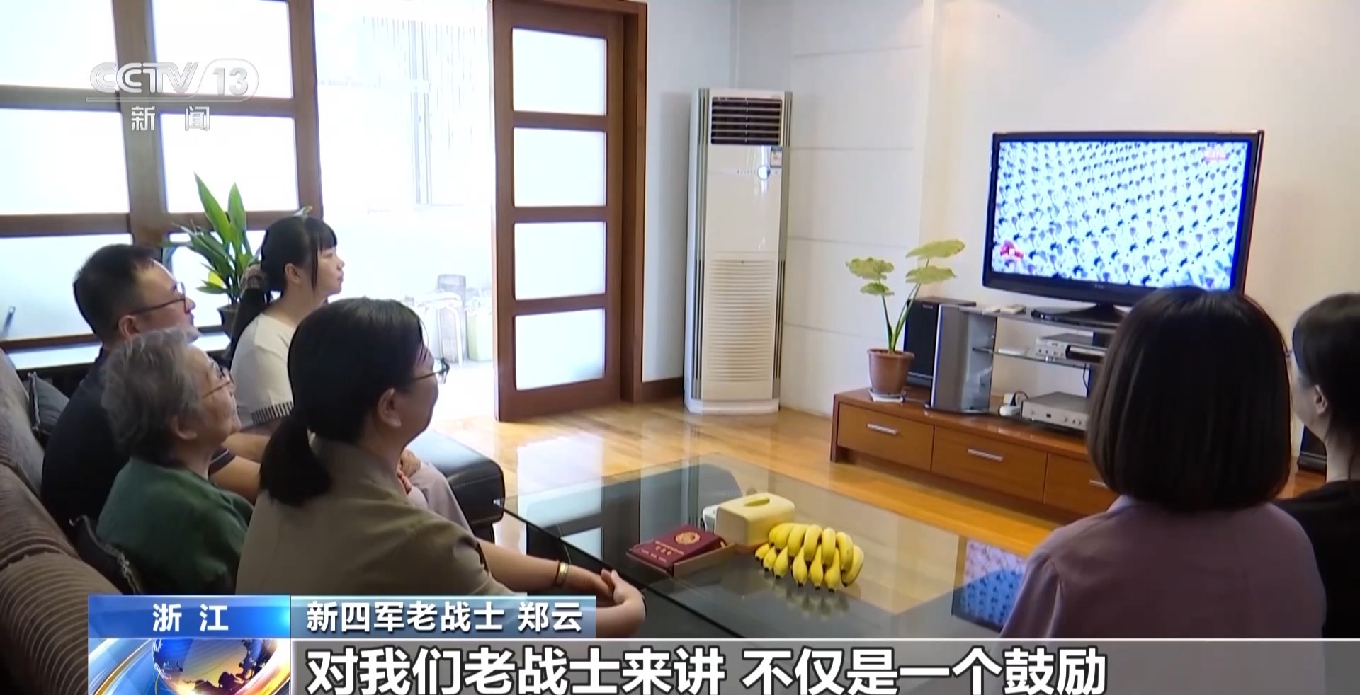 在浙江湖州93歲新四軍老戰(zhàn)士鄭云的家中,社區(qū)工作人員與鄭云老人一起收看大會直播,鄭云曾先后參加過抗日戰(zhàn)爭、解放戰(zhàn)爭,看完此次閱兵,她感觸頗深。