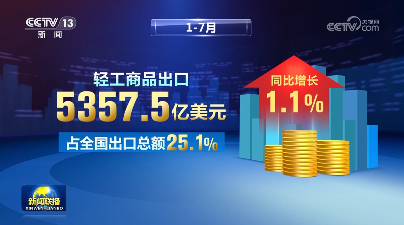 出口方面,繼續(xù)保持韌性。1—7月,輕工商品出口5357.5億美元,占全國出口總額25.1%,同比增長1.1%;21個(gè)大類行業(yè)中11個(gè)保持增長。