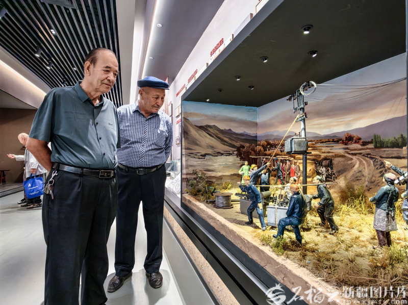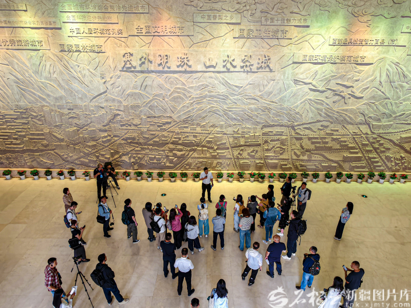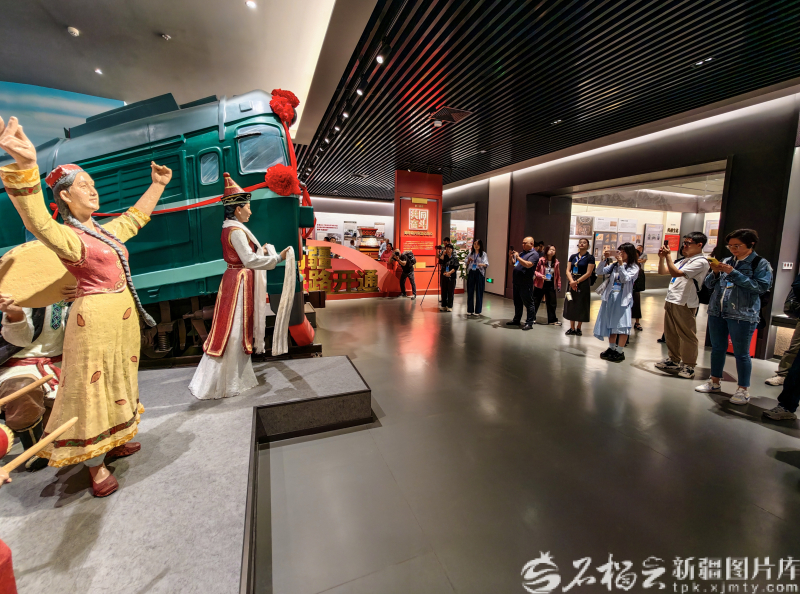 9月8日,在巴州鑄牢中華民族共同體意識(shí)主題展館,采訪團(tuán)拍攝南疆火車通車雕塑。