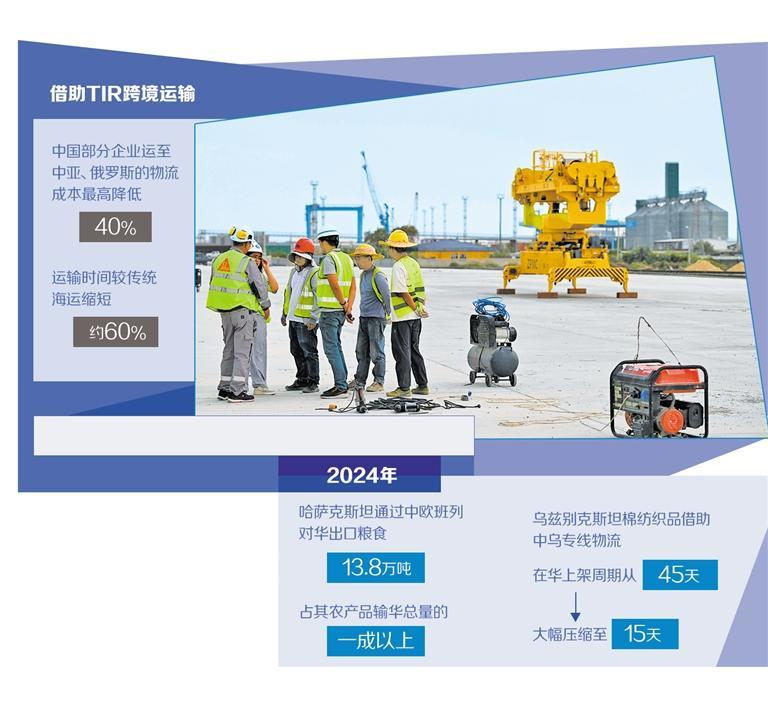 在區(qū)域產(chǎn)業(yè)鏈協(xié)同方面,TIR運輸也為企業(yè)與成員國帶來了實實在在的收益:中國部分企業(yè)借助TIR跨境運輸,將運至中亞、俄羅斯的物流成本最高降低40%,運輸時間較傳統(tǒng)海運縮短約60%;2024年,哈薩克斯坦通過中歐班列對華出口糧食13.8萬噸,占其農(nóng)產(chǎn)品輸華總量的一成以上;烏茲別克斯坦的棉紡織品借助中烏專線物流,在華上架周期從45天大幅壓縮至15天。在產(chǎn)業(yè)鏈協(xié)同層面,汽車零部件、電子元件等中間品成了跨境電商新增長點,標(biāo)志著區(qū)域合作正從商品貿(mào)易向產(chǎn)業(yè)鏈深度融合升級,通過降成本、提效率、拓品類,實現(xiàn)了上下游產(chǎn)業(yè)鏈的互利共贏。